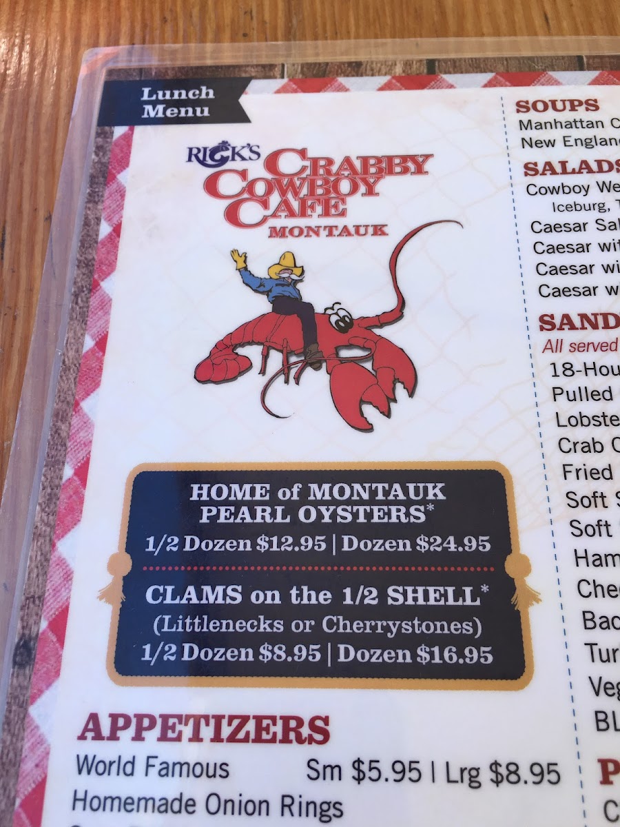 Rick's Crabby Cowboy Cafe Menu